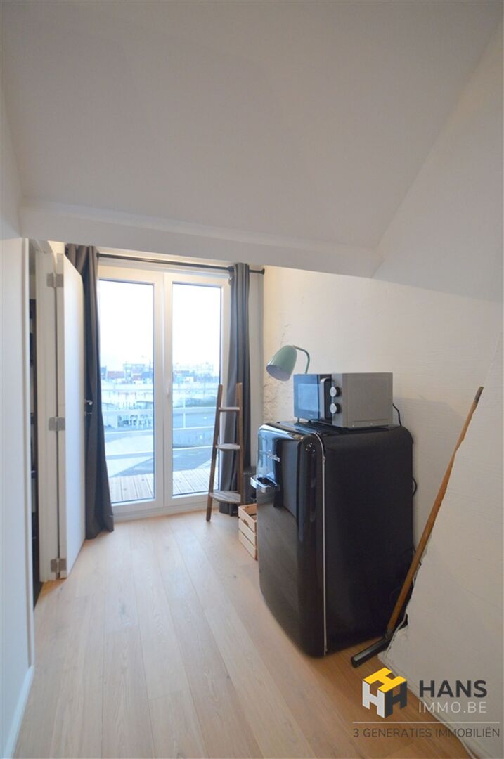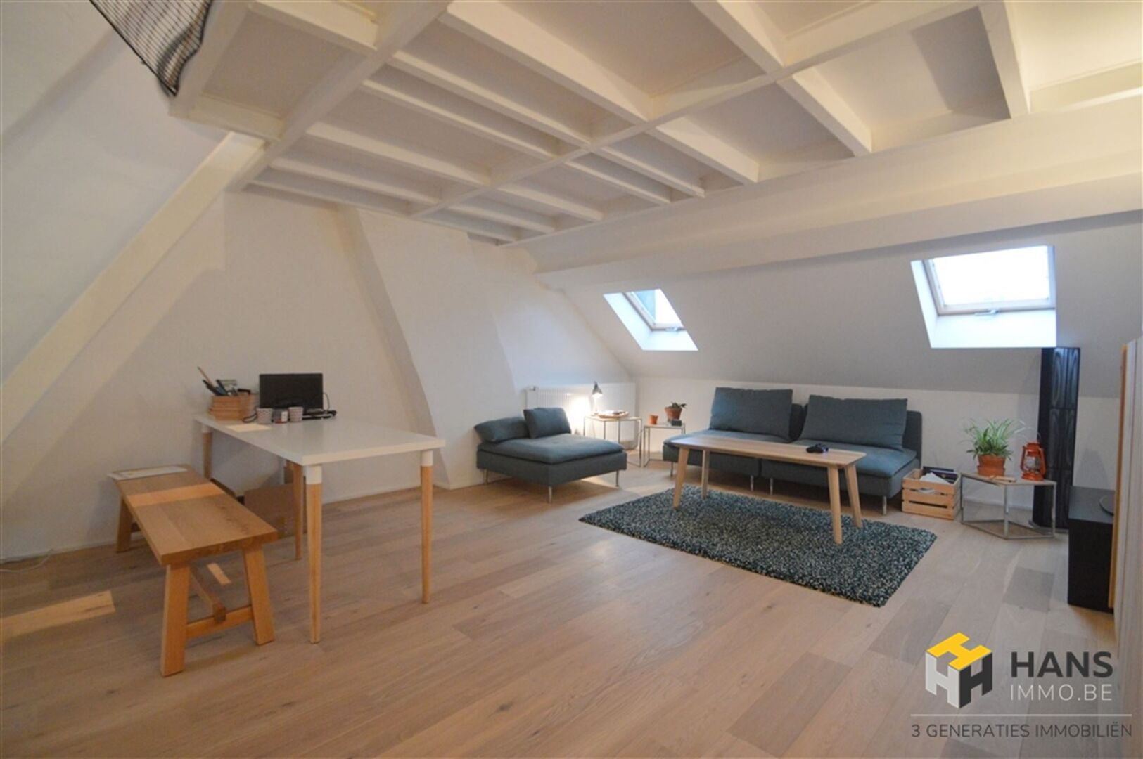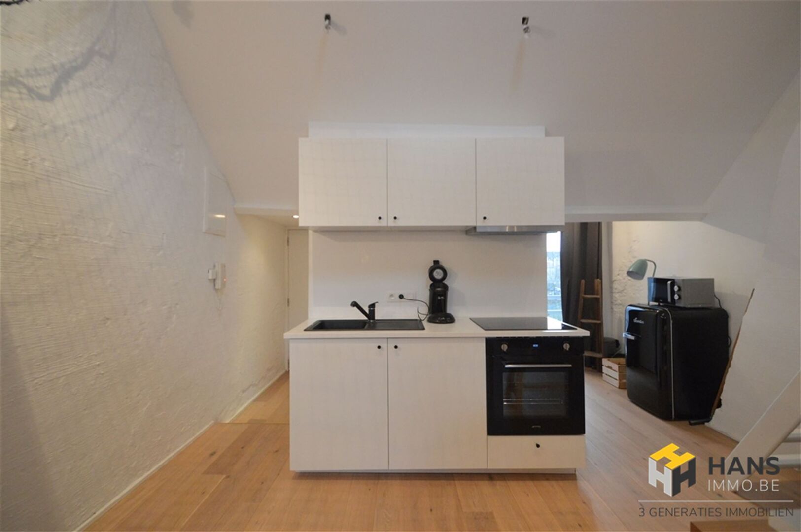 Trendy duplex van 53m² vlakbij Park Spoor Noord met veel licht inval en een moderne look. Indeling: Men komt binnen in de inkomhal van 3m² op eiken parket. Een ruime leefruimte met open keuken op een eiken parket vloer. De keuken is voorzien van ijskast, keramische kookplaat, oven, dampkap en micro oven. De slaapruimte bevind zich op een mezzanine van 12m² op eiken parket. De badkamer is voorzien van een inloopdouche, toilet en lavabo. Tot slot een leuk terras van 4m² op bankirai. EXTRA: gemeenschappelijke kosten 50 EUR/maand (water, verzekering gemeenschappelijke delen) Voor meer info ga naar www.hansimmo.be of bel 03/290.30.30.