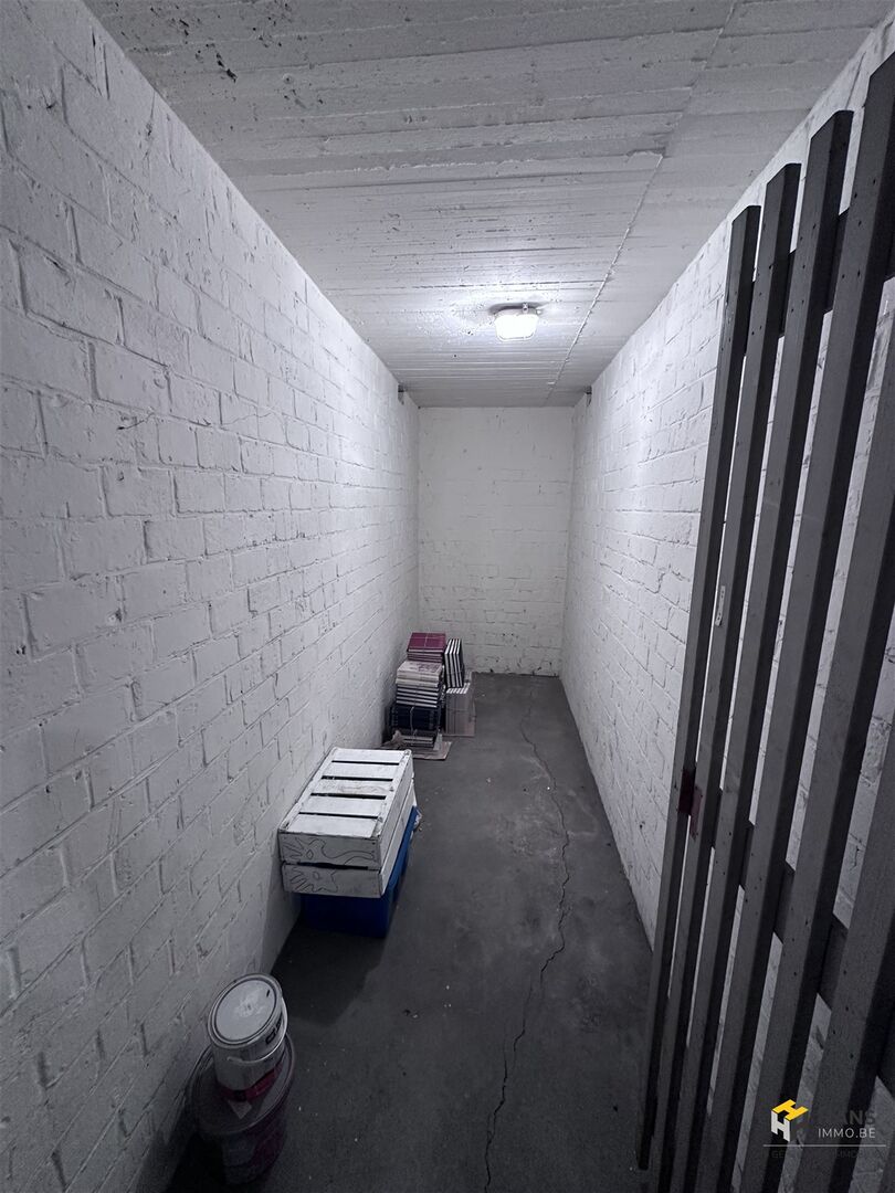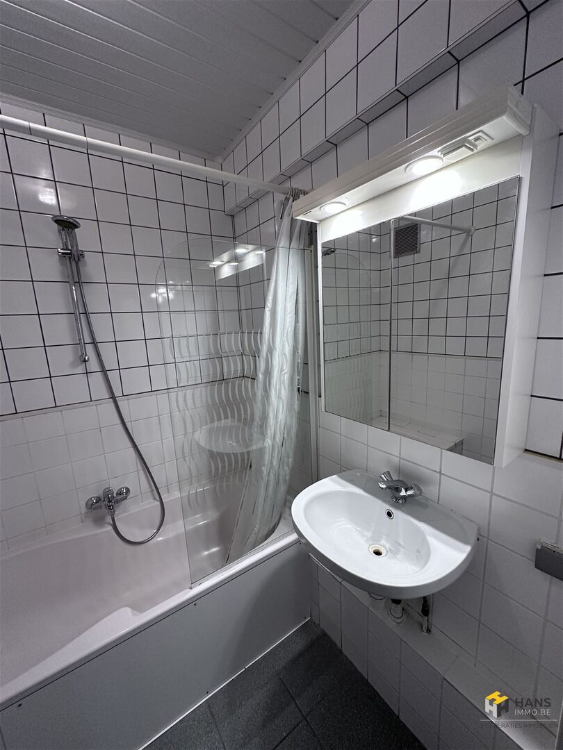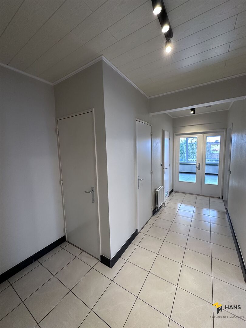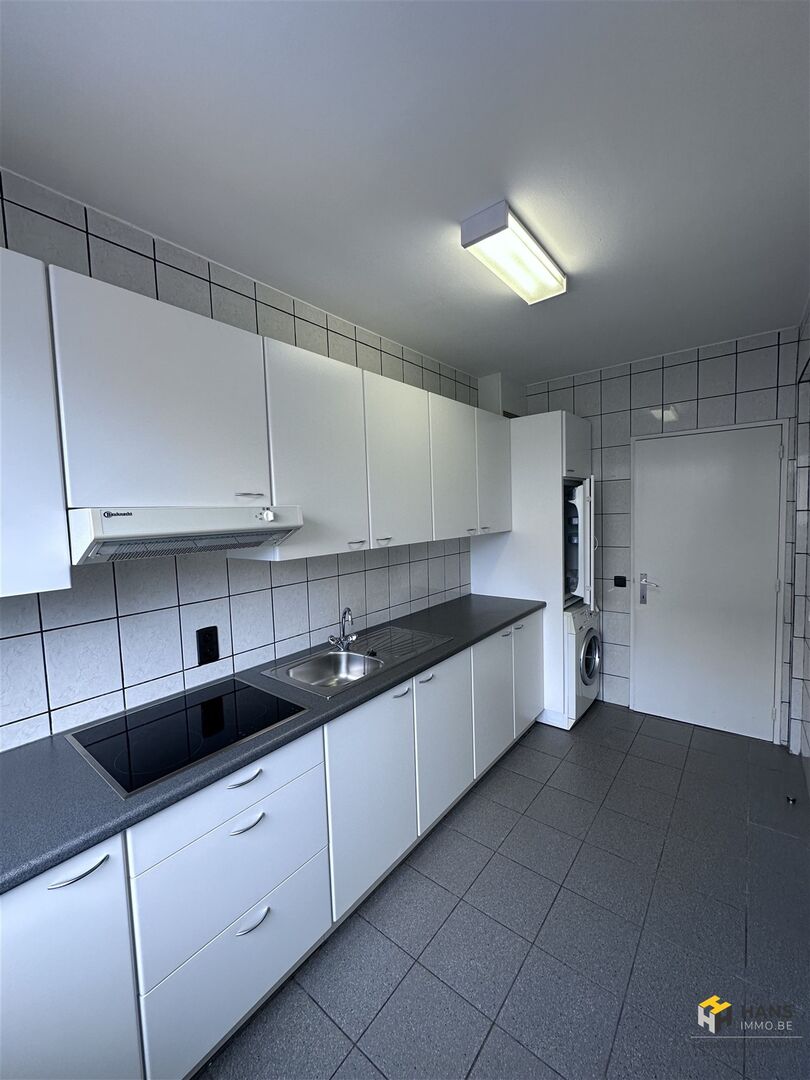Je komt binnen in de hal, die voor de verbinding zorgt tussen alle aanwezige ruimtes. Vooraan situeert zich de woonkamer met aparte keuken. De keuken is goed onderhouden en uitgerust met een kookvuur, dampkap, spoelbak, wasmachine, oven en frigo. Centraal in het appartement treffen we de badkamer met ligbad/douche en lavabo. Hiernaast is er nog een apart toilet. De 2 slaapkamers bevinden zich achteraan en vanuit de grootste heb je toegang tot het zuidwest-georiënteerde terras. Tot slot is er nog een private kelderberging. Voor meer info of een gratis schatting surf naar www.hansimmo.be