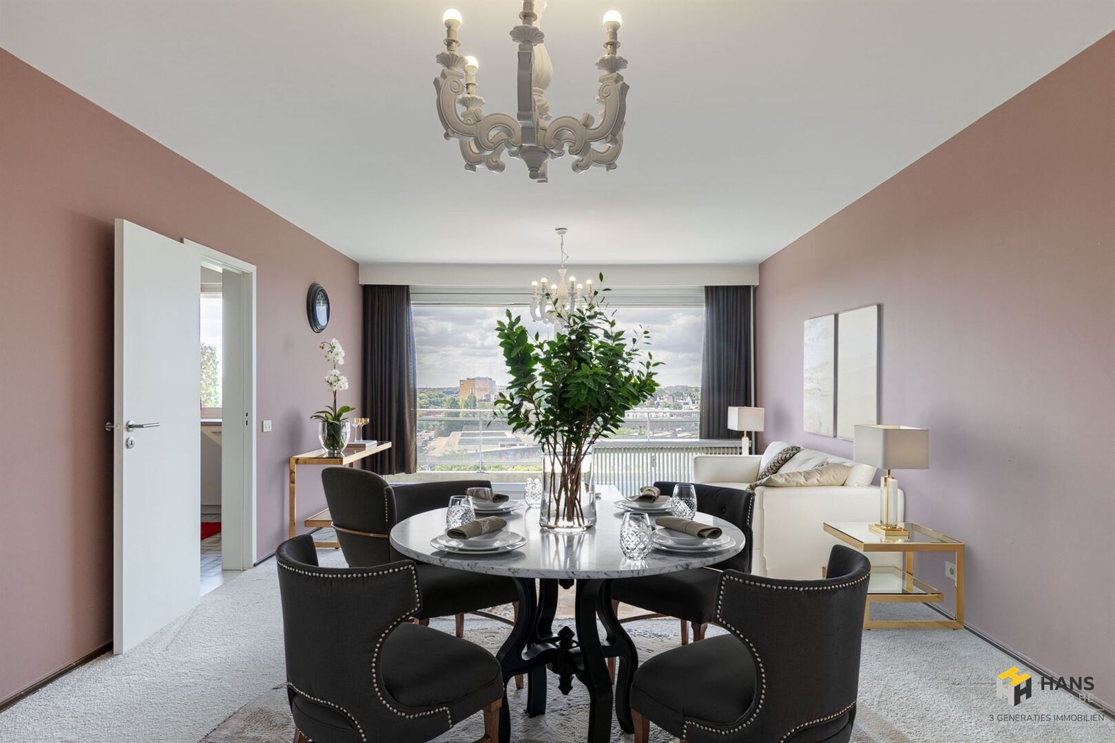 De leefruimte heeft een oppervlakte van maar liefst 32 m² en grenst aan de aparte keuken (9 m²) met basisuitrusting. De grote raampartijen dragen hier bij tot veel binnenvallend daglicht. Via een schuifdeur heb je toegang tot het zuid-georiënteerde terras (10 m²) met uniek panoramisch zicht over de omgeving. Centraal in het appartement situeert zich de badkamer (6 m²), die voorzien is van een ligbad/douche en vernieuwd lavabomeubel. De 2 volwaardige slaapkamers van 13 m² en 17 m² zijn gelegen aan de achterzijde. Ook zijn er nog een aparte wc en ingemaakte vestiairekast aanwezig. Tot slot is de ondergrondse garagebox optioneel mee aan te kopen voor €33.000.