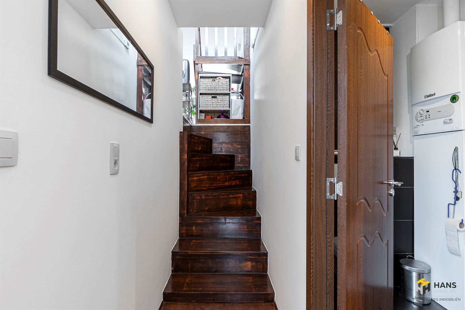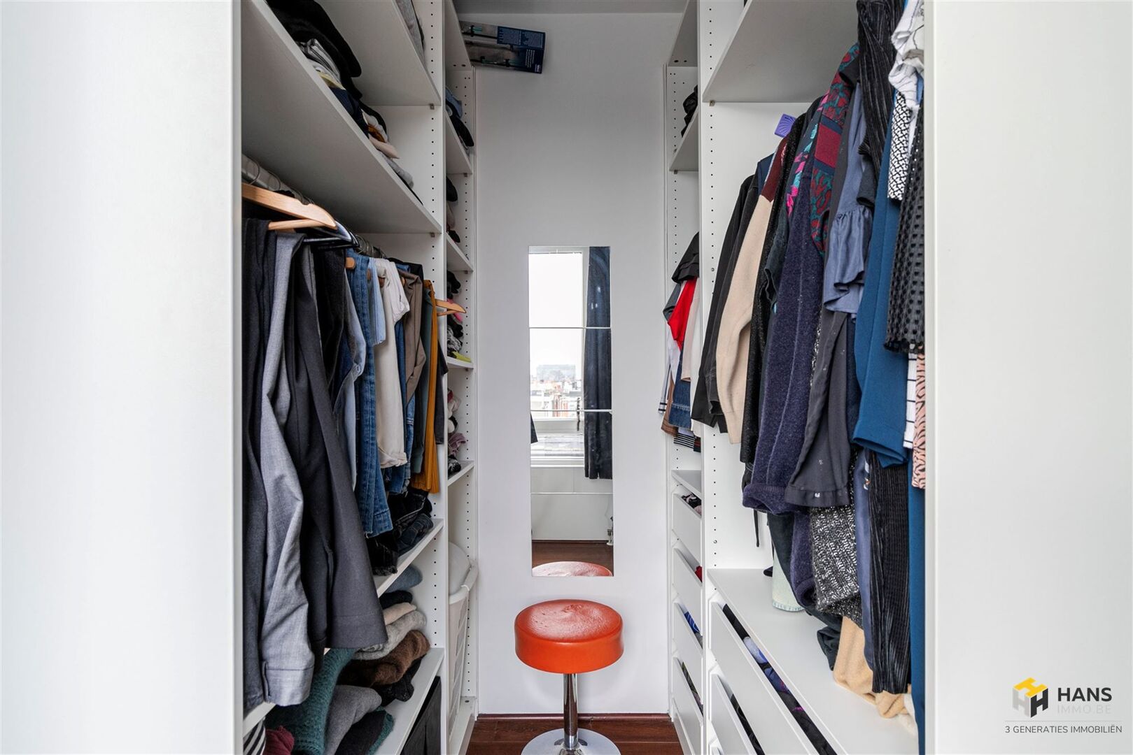 Via een trap in de keuken bereik je de praktische berging, die toegang geeft tot dé absolute troef van dit appartement: het noord-georiënteerde dakterras van maar liefst 24 m²! Tot slot beschikt het appartement nog over een privatieve kelderberging.