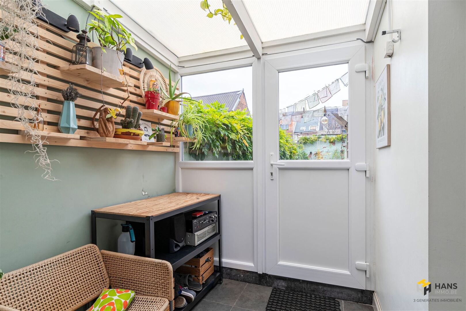 Je betreedt de woning via de inkom- en traphal. Links bevindt zich de leefruimte (25 m²) met aansluitend achteraan de open leefkeuken (20 m²), uitgerust met gasvuur, ingebouwde oven, vaatwasser en koelkast. Verder vind je op het gelijkvloers nog een veranda (5 m²), een aparte wc en een praktische berging/wasplaats (6 m²). De noord-oost-georiënteerde tuin (60 m²) vormt een aangename buitenruimte om heerlijk te ontspannen.