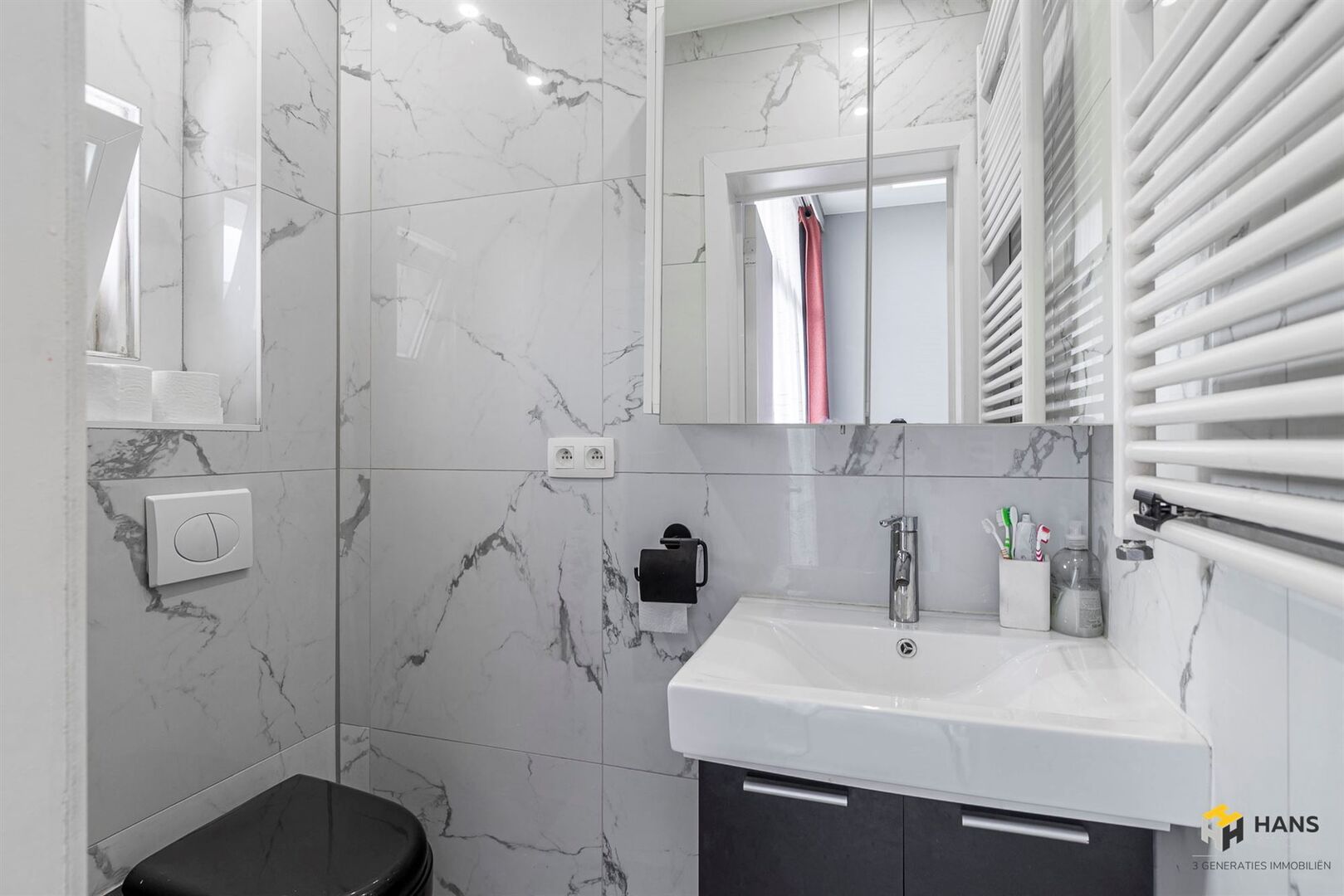 Dit appartement bevindt zich op de benedenverdieping van een kleinschalig gebouw van 3 hoog, waarvan het dak in 2015 geïsoleerd werd en in 2023 voorzien van 11 zonnepanelen. Ook de achtergevel kreeg in 2021 een isolatielaag. De vaste kosten bedragen slechts €50/maand en omvatten water en blokpolis. De verwarming is individueel op gas. Binnenin werd het appartement in 2021 grotendeels vernieuwd met PVC-ramen, een nieuwe verwarmingsketel, en een opgefriste keuken en badkamer.