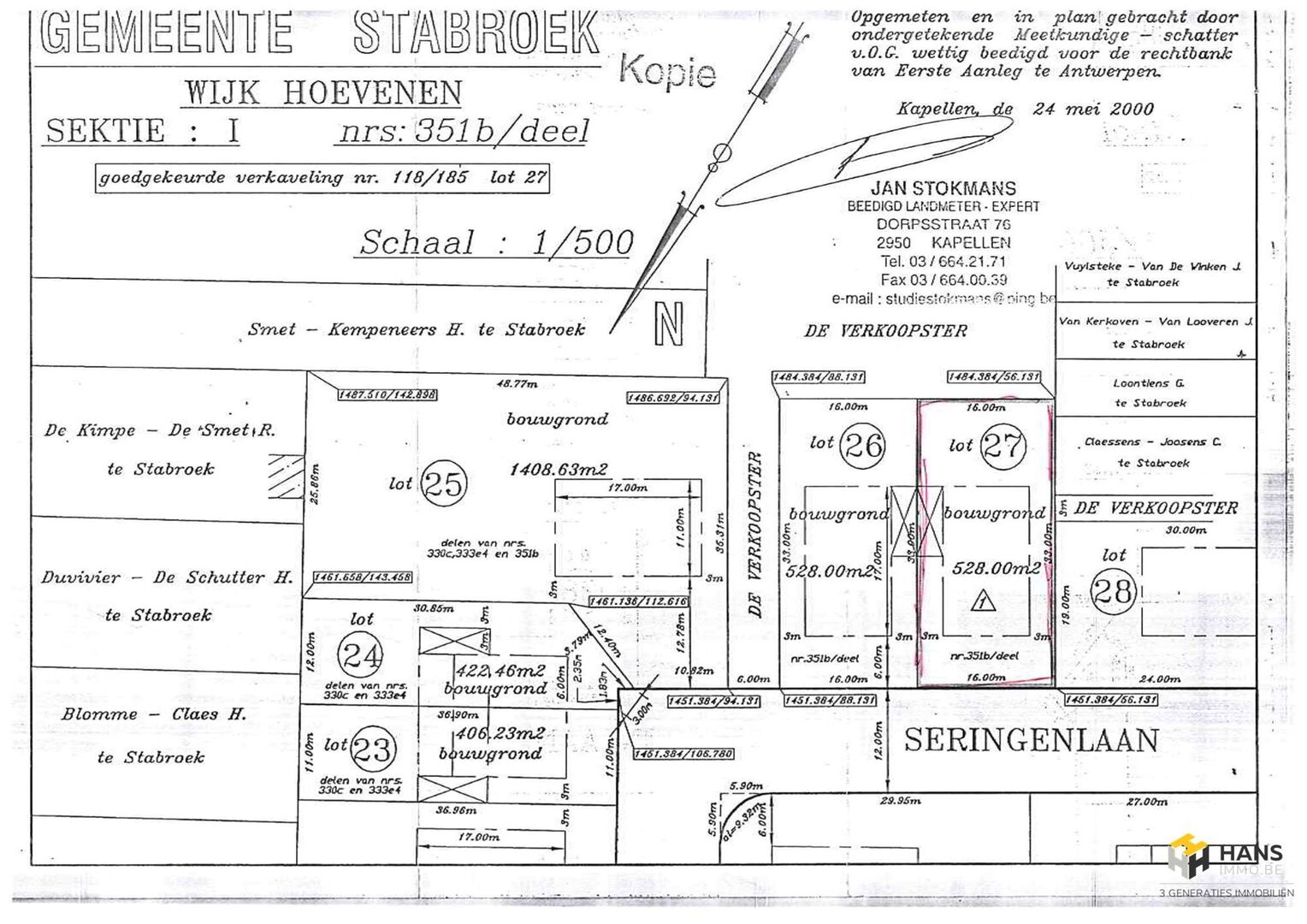 Grond van 528m² voor het bouwen van een 1 gezinswoning. Perceel 16m op 33m. Gevel van 10m en diepte 17m. Bouwvoorschriften zijn aangevraagd bij de gemeente Stabroek voor meer info www.hansimmo.be