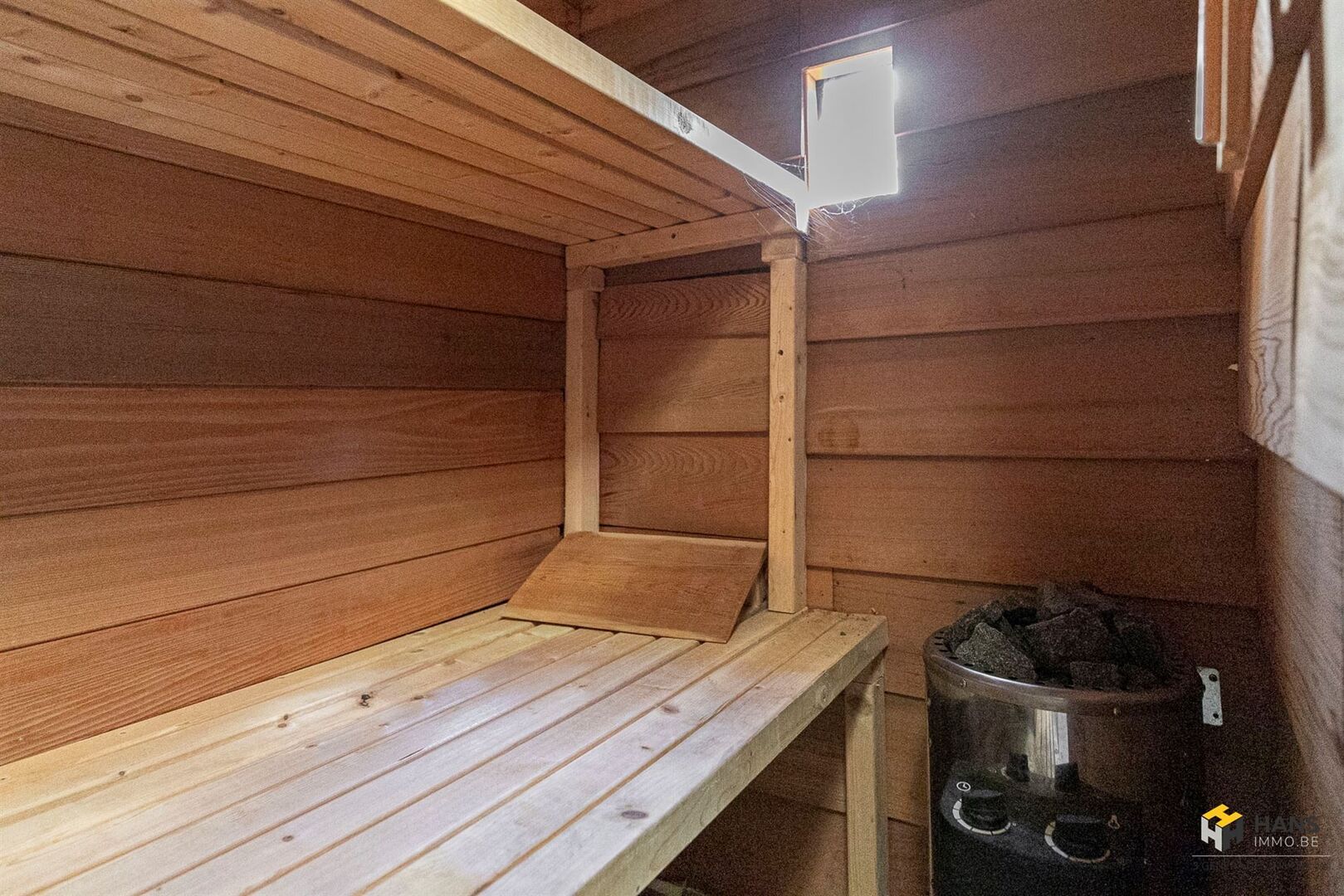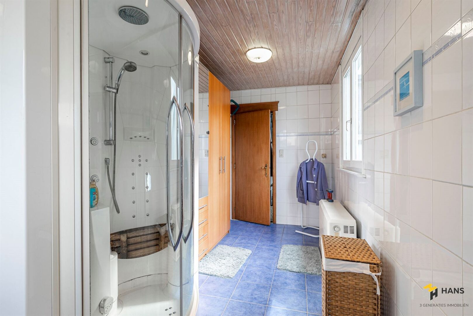 Reeds bij het binnenkomen in de inkom-/traphal voel je de ruimtelijkheid van het pand dankzij de hoge plafonds. Links bevindt zich een eerste kamer (15 m²), momenteel in gebruik als berging/wasplaats. Achteraan op het gelijkvloers treffen we de leefruimte met open keuken, goed voor een totale oppervlakte van zo’n 41 m². Je geniet hier van een gunstig zicht op de mooi aangelegde, oost-georiënteerde tuin (94 m²) met overdekt terras en sauna in het tuinhuis, een onverwachte extra!