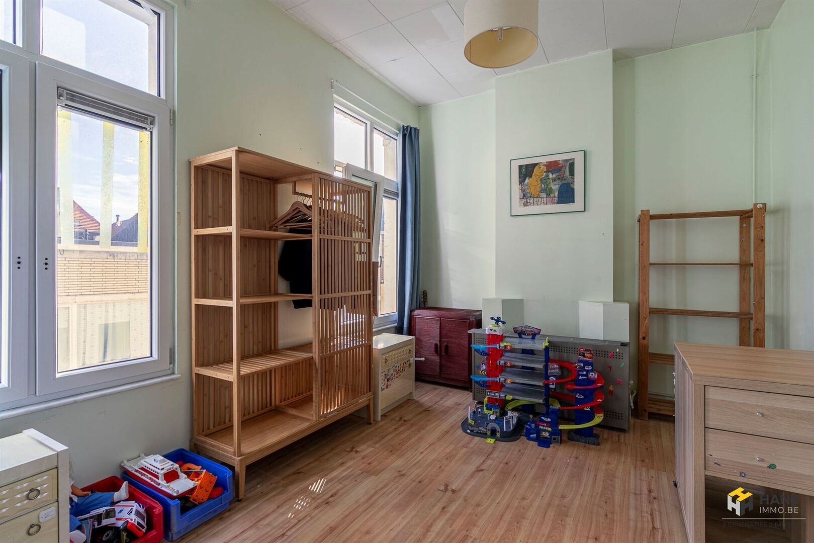 Hoe is het pand ingedeeld? Op het gelijkvloers vind je twee aangrenzende ruimtes: 16 m² aan de voorzijde en 12 m² achteraan. Ook is er nog een aparte wc aanwezig. Wanneer je de trap oploopt, kom je een tussenverdieping met een kamer/berging van 7 m² voorbij. Op de eerste verdieping treffen we de lichtrijke woonkamer (22 m²) en aparte keuken (7 m²) met basisuitrusting. De tweede etage kent eenzelfde indeling met een grote slaapkamer (22 m²) vooraan en de badkamer van 7 m² aan de achterzijde. De bovenverdieping herbergt de overige 2 slaapkamers van 6 m² en 21 m².