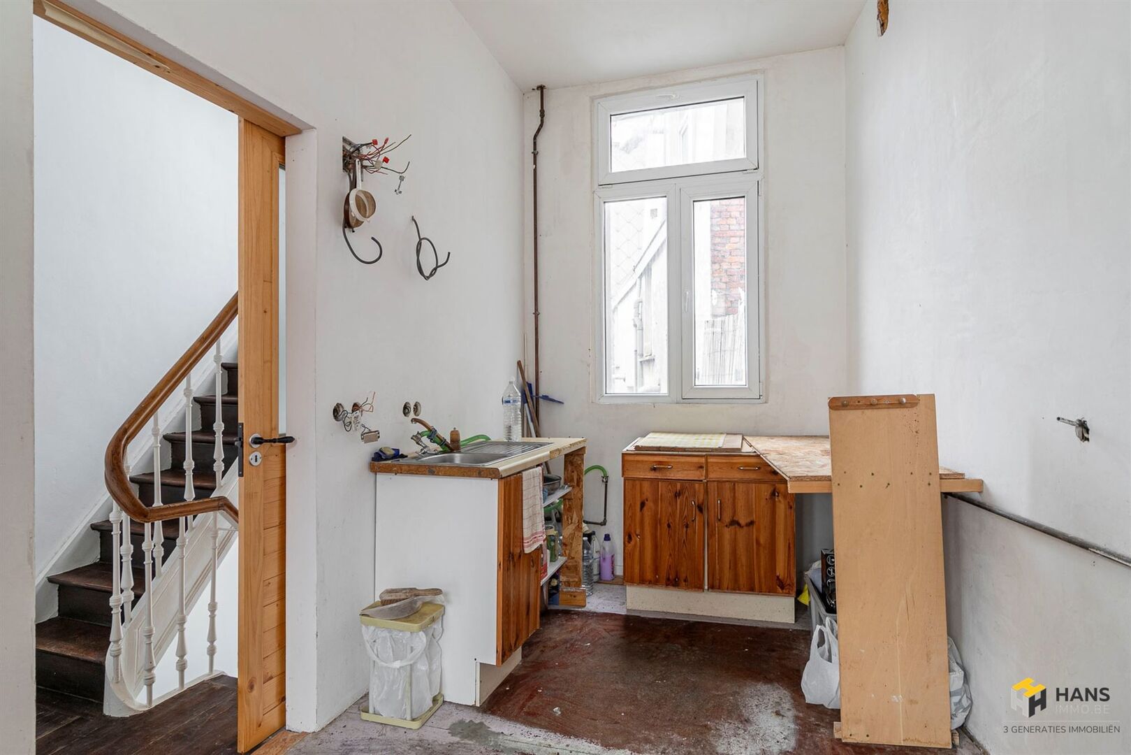 Dankzij de indeling over vier verdiepingen van telkens circa 25 m² leent dit woonhuis zich perfect voor co-housing of verhuur aan studenten. Op het gelijkvloers bevindt zich vooraan een ruimte van 15 m² met aansluitend een kamer van 4 m² en toegang tot de buitenruimte (8 m²) met noordoriëntatie. De eerste verdieping omvat een lichte, open kamer (25 m²), terwijl op de tweede etage een ruimte van 23 m² met vaste trap naar de bovenverdieping (21 m²) terug te vinden is. Verder is er een badkamer (3 m²) met douche, lavabo en toilet, en ook een kelder behoort tot de troeven van dit pand.