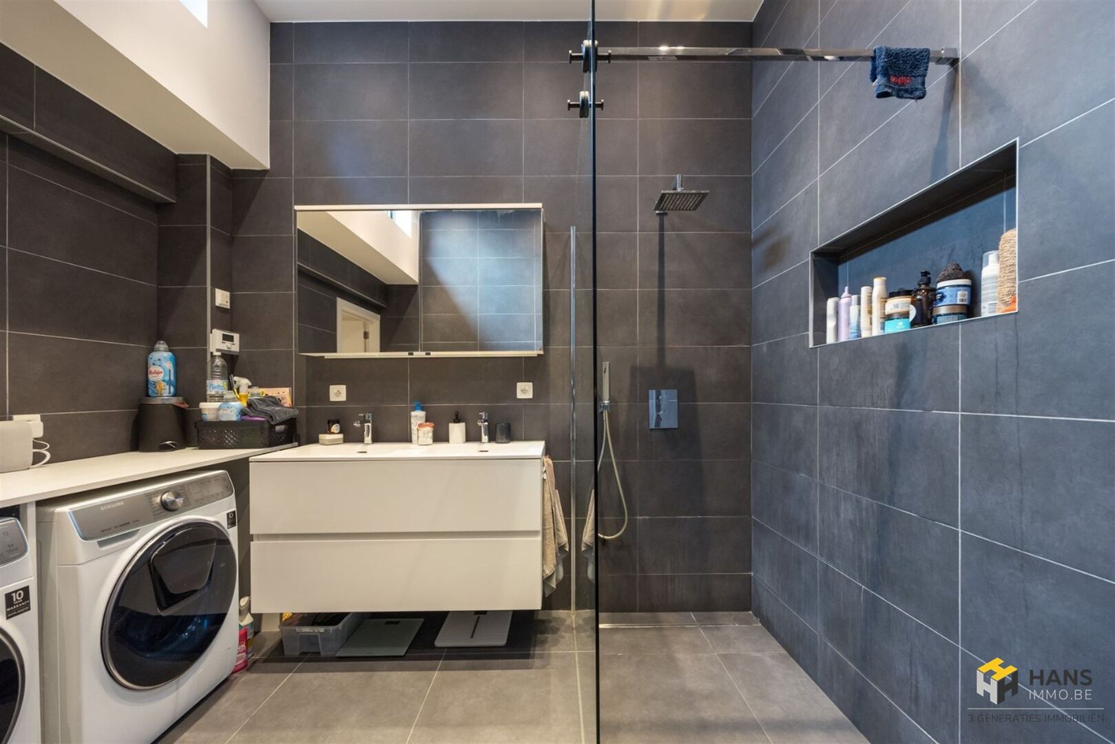 De woning is energiezuinig en slim, met 15 zonnepanelen, een conforme elektrische installatie en een domoticasysteem voor bediening van verlichting en verwarming op afstand. Op het gelijkvloers bevindt zich de rustige masterbedroom (17 m²) met dressing en een recent vernieuwde badkamer met inloopdouche, regendouchekop, dubbele lavabo en aansluitingen voor was- en droogkast. Het tussenverdiep beschikt over een extra toilet en een technische ruimte.