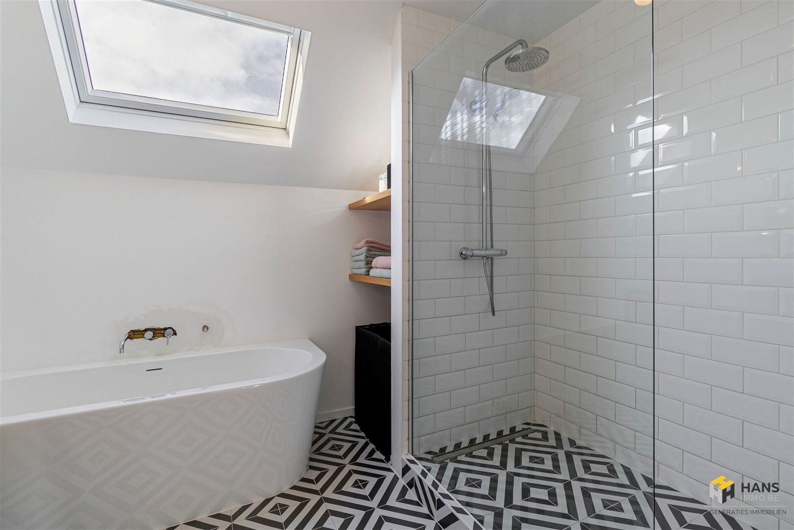 Op de eerste verdieping bevinden zich twee ruime slaapkamers van 13 m² en 16 m². De badkamer is compleet ingericht met een ligbad, inloopdouche, handdoekdroger en lavabomeubel. Daarnaast is er nog een aparte toilet aanwezig.