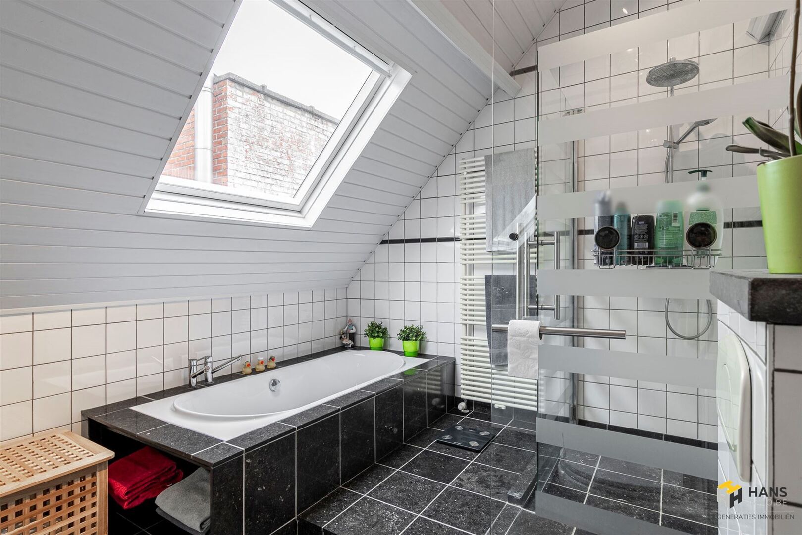 Je betreedt de woonst langs opzij en komt binnen in de eetkamer (16 m²), die achteraan aansluit op de woonkamer, goed voor een totale oppervlakte van zo’n 38 m². De open keuken is uitgerust met alle hedendaags comfort en baadt in natuurlijk licht. Van hieruit heb je toegang tot de mooie aangelegde tuin (130 m²) met zuid-oost-oriëntatie. Verder zijn er op het gelijkvloers nog een aparte wc en 2 slaapkamers van respectievelijk 11 m² en 13 m² te vinden. Om de bovenverdieping te bereiken heb je de keuze tussen 2 trappen. Vooraan treffen we een slaapkamer van 17 m² en achteraan de masterbedroom (22 m²) met dressing. Hiertussen bevinden zich nog de ruime badkamer (12 m²) en een overloop, die veel mogelijkheden biedt dankzij de oppervlakte van zo’n 17 m². Als kers op de taart krijg je er nog een ruime garage met automatische poort bij, die te bereiken is vanuit de achterliggende straat.